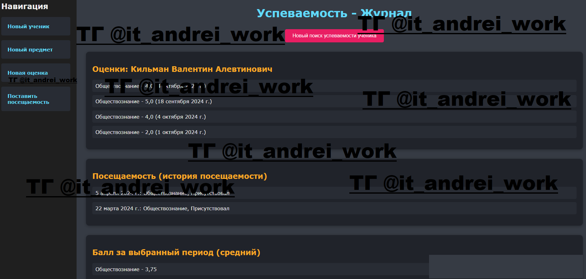 предоставлять возможность добавления оценок, отметок о посещаемости и отслеживания успеваемости каждого ученика.