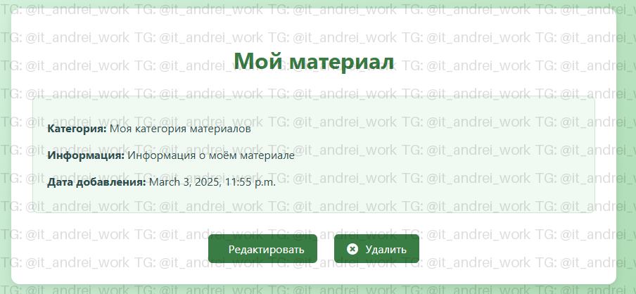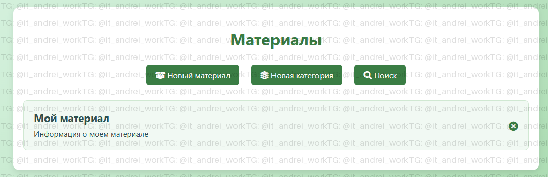 веб-приложение должно позволять пользователям добавлять, редактировать и удалять материалы из списка.