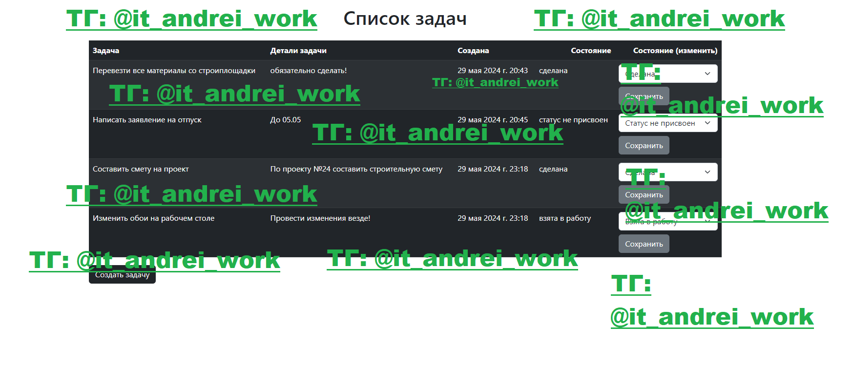 также предоставлять возможность отмечать выполненные задачи и отображать список задач с их статусом.